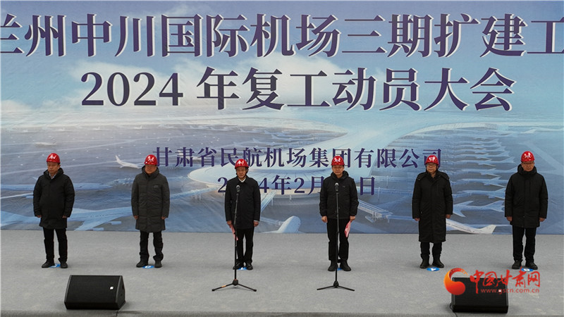 中國甘肅網(wǎng)2月26日訊(西北角·中國甘肅網(wǎng)記者 宋芳科 通訊員 王生朝)2月25日,甘肅省民航機(jī)場集團(tuán)在蘭州中川國際機(jī)場三期擴(kuò)建工程建設(shè)現(xiàn)場召開2024年復(fù)工動員大會,全體參建單位和廣大建設(shè)者聚焦沖刺7月底全面竣工、年底轉(zhuǎn)場投運(yùn)目標(biāo)任務(wù),迅速掀起大干快上熱潮,全面推進(jìn)復(fù)工復(fù)產(chǎn),以起步就是沖刺、開局就是決戰(zhàn)的干勁全力跑出項(xiàng)目建設(shè)“加速度”。